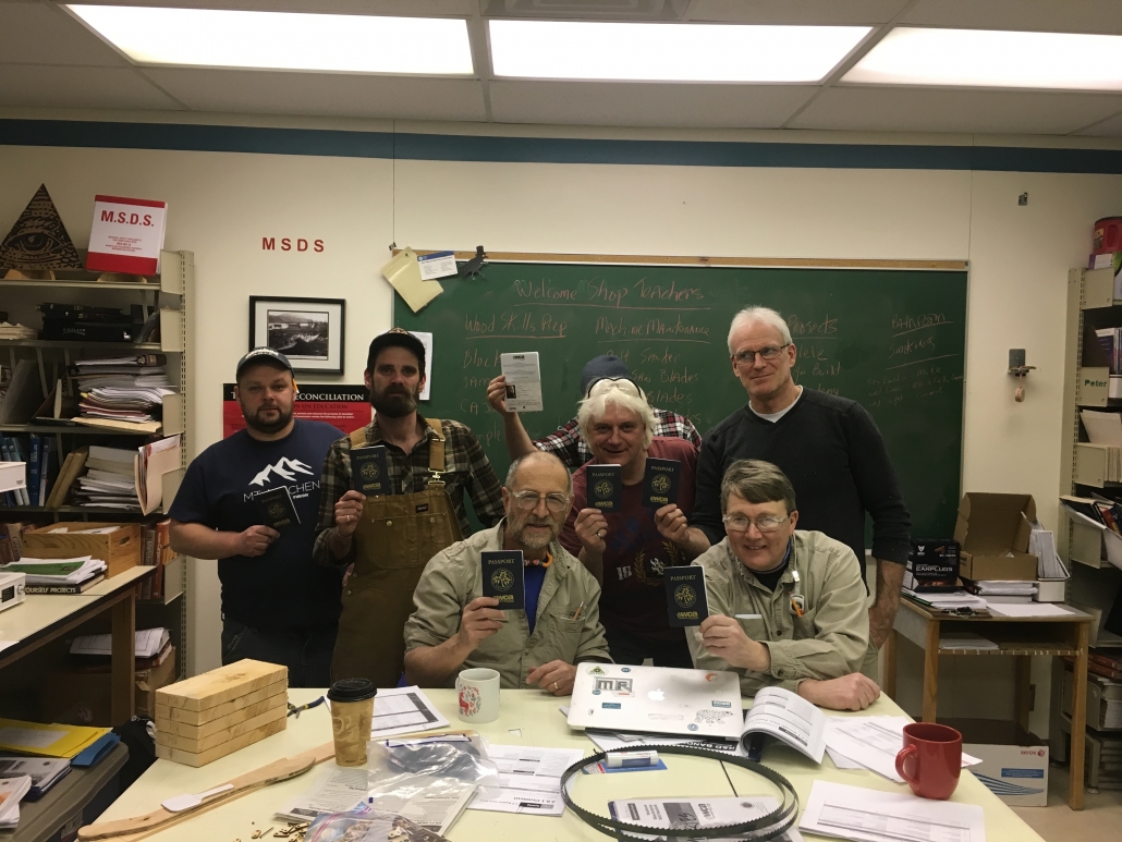 Last October, Quarton conducted a two-day professional development workshop in Whitehorse attended by 15 woodworking teachers with a wide range of experience levels, including one from north of the Arctic Circle. The first day focused on measuring and layout. Day two was devoted to the safe operation of table saws and other standard machines based on the WCA Skill Standards.