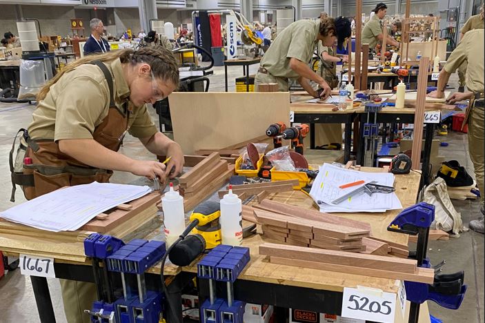 With approximately 100 students enrolled in one of his seven woodworking classes structured around the Woodwork Career Alliance’s Skill Standards, Smith never runs out of things to promote.