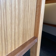 “I asked him to make something that he would be proud to have in his home,” said Chuck Buck, shop foreman of Jefferson Millwork and an accredited skill evaluator of the WCA. “He painstakingly made the herring bone top out of scrap materials from the shop. He did a tremendous job. I’m especially proud of the problem-solving skills he displayed, not only showing an understanding of what works but of what works best.”