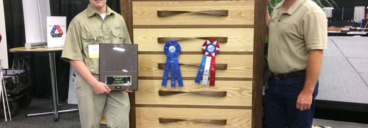 Through his involvement with SkillsUSA Texas, Lutz met Joe Davis, mill and cabinet instructor at DJCC and an active member of the SkillsUSA cabinetmaking contest. Over the past 23 years, Davis has taught woodworking to more than 1,200 students. While only a small percentage of his students pursue woodworking careers, Davis said he is resolute in teaching them basic skills and essential safety to be successful.